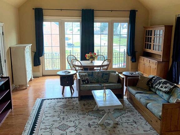 Fabulous 2nd floor 900 square foot fully furnished studio apartment located in convenient Rivers Edge community w/private entrance. Random-width hardwood floors thru-out, 14' vaulted ceilings, (2) 62" wood ceiling fans, lots of recessed lights & natural light. Walk-out to striking balcony w/panoramic views of quiet suburban neighborhood. Fully equipped galley-style kitchen w/42" solid wood cabinetry, under & above cabinet lighting w/antiqued granite countertops. 3 huge walk-in closets w/California closet organizers. brand new stackable washer & dryer in unit as well as central vac. Attractive full bath w/sink cabinet & tub/ shower. On-street parking & easy access to Columbia Mall & Merriweather, MARC Rail (7 miles), NSA (15 minutes), BWI Airport (20 minutes), downtown Baltimore (25 minutes), NASA (30 minutes), Annapolis or DC (35 minutes), Frederick (45 minutes). Available for immediate occupancy. Monthly rent is $1200 plus $150/month for utilities & unit cleaning every 2 weeks. Owner looking for 620+ credit scores & no cost for credit application.