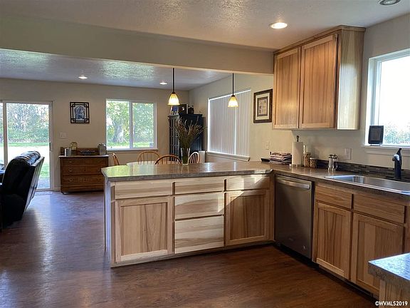 Accepted Offer with Contingencies. Wonderful private setting near dead-end of quiet drive less than 3-miles from town. Spacious home with open floor plan; kitchen includes wood cabs; stainless steel appliances; gas range; pantry; and bar area. Fireplace with insert in family room. Master includes full bath and large closet. Gas FA heat w/AC. Great farming opportunity with ±16 acres McDonald hazelnuts planted in 2016 and well managed with drip irriagation. Water rights from Santiam Water Control District for 16 acres.