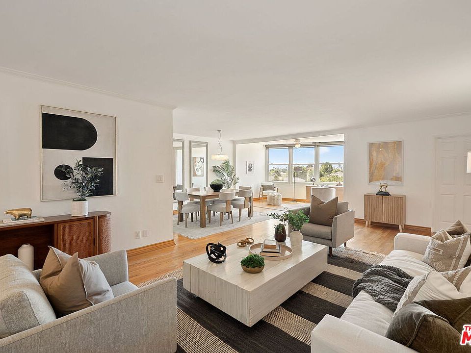 Rare sun-filled top floor penthouse in prime Westwood. This quiet, spacious 3-bedroom, 2-bathroom top floor unit offers a bright, sun-filled retreat in the heart of Los Angeles. The expansive open floor plan seamlessly connects the kitchen, dining, and living areas, creating the perfect space for both everyday living and entertaining. Beautiful wood floors flow throughout the main living spaces, and a dramatic wall of windows in the great room floods the home with natural light while showcasing lovely views of Los Angeles and the surrounding neighborhood. Clean kitchen with stainless appliances and new cook-top stove. The luxurious primary suite features a spa-like remodeled bathroom and generous closet space, while two additional spacious bedrooms are complemented by an upgraded hall bathroom, perfectly balancing comfort and style. Thoughtful contemporary upgrades throughout combine with a warm, inviting atmosphere. The penthouse includes 2 parking spaces in a small boutique building. Centrally located just minutes from coffee shops, dining, shopping, Westfield Century City Mall, Westwood Village, UCLA, and major freeways, this home perfectly blends luxury, style, and Westside convenience. Don't miss this rare Los Angeles gem.