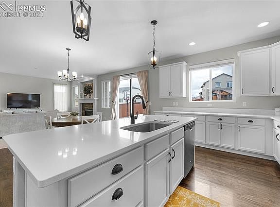 Welcome to 10726 Maroon Peak Way - a spacious 2-story with room to grow! This adorable property will catch your eye from the curb with it's charming covered porch and beautiful board and batten detailing. Just past the entryway, you are greeted by a lovely formal dining room/office space and convenient powder room for guests. Make your way to the open concept living room/kitchen space and take it all in - gorgeous white cabinetry with crown molding, quartz countertops, stainless steel appliances, beautiful dark wood laminate flooring, functional seated island and walk-out access to a lovely patio space and fenced in backyard. The spacious living room also features a gas insert fireplace with stone detailing that is complemented beautifully with all-white mantle and molding. Head upstairs where you will find the Master suite, 3 additional bedrooms, and a full bathroom. This Master suite offers a roomy retreat with plenty of space for a seating area/workspace, as well as a 5 piece en-suite bathroom and a gracious walk-in closet. The Master bathroom features beautiful wood-look tile flooring, spacious double vanity with plenty of storage space, a soaking tub and separate fully tiled shower. Of the 3 remaining bedrooms upstairs, 2 of them feature a walk-in closet and all 3 have easy access to the full bathroom located on the upper level. Finishing out the upper level is the conveniently located laundry room and storage space - no more lugging laundry up and down stairs! The basement is currently unfinished and is used as a storage space, but it can easily be finished out to expand your living space as you and your family continue to grow. 2024-06-04