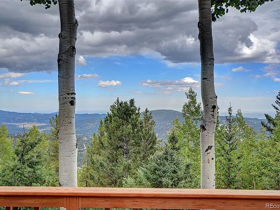 Surrounded by privacy, trees, wildlife, aspens & far reaching panoramic 180* views this mountain home offers a cozy place to unwind. Enjoy the big deck looking at Denver & surrounding mountains or enjoy star gazing. Inside you will love the Quadrafire gas fireplace, soaring ceilings, cherry hardwood floors, new carpet throughout, open concept & updated kitchen. The cherry hardwood floors flow into the kitchen with updated cabinets & granite countertops. Adjacent to the kitchen is a built-in area for an office & an eatery. Upper level bedroom offers a loft area great for a meditation area, yoga room, workout studio or nursery. Updated full bath includes marble counters. Multiple bedrooms offer plenty of room & office space. The tuck under garage offers access to the house or yard for your pets. Big laundry room with storage cabinets. On county maintained/plowed roads & only 12 mins to hwy for shopping in Conifer, access to fishing, hiking, parks or the high country for skiing!