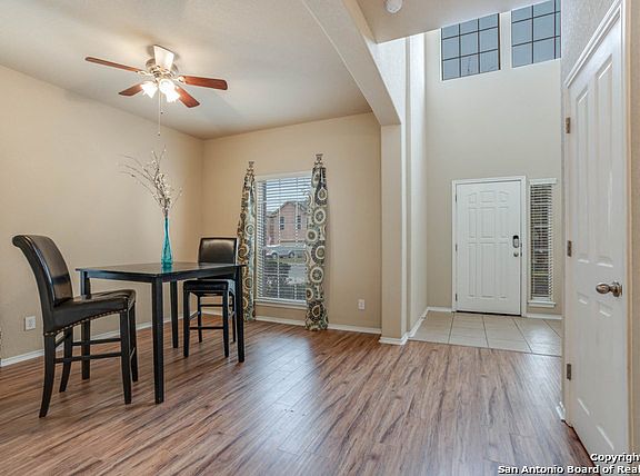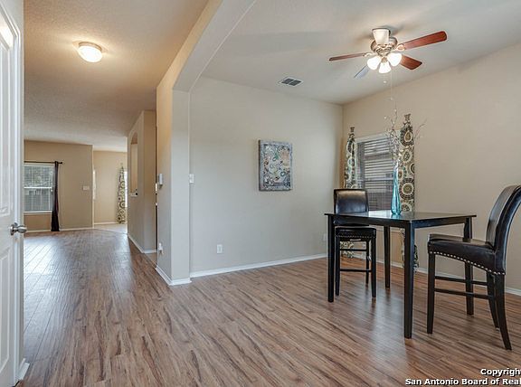 Well maintained, two-story Helotes home minutes from plenty of shopping, dining, and entertainment! Easy access to Loop 1604 and Lackland AFB. Large master and secondary bedrooms upstairs with a guest bedroom and full bath down. Walking distance to the community park and pool. Brand new laminate plank flooring in downstairs living area and roof replaced within the last two years.