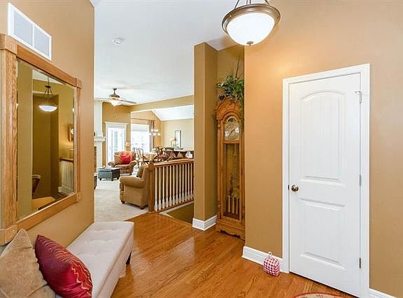 Gorgeous custom Reverse Ranch on Private Cul-de-Sac lot that backs up to green space! Open floor plan with two bedrooms on the main level and a third in the finished, walkout basement. Two fireplaces- one on each level! Finished walkout basement has a wet bar, full bath, and tons of storage. So much space! Amazing landscaping around the property & inground sprinkler system. Enjoy the outdoors on the back deck or patio underneath.