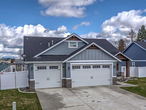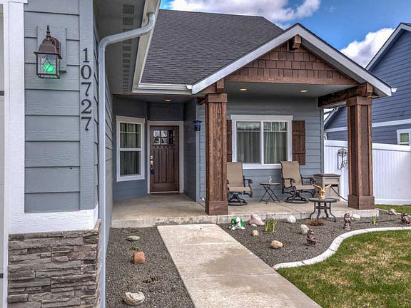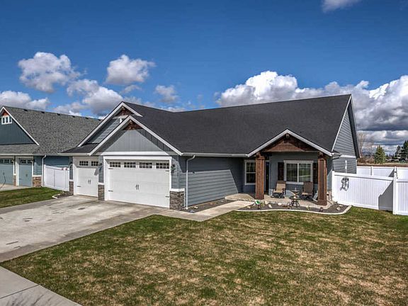 2017 Single Level home, Quality construction. 1871 sq ft, 3 Bedroom, 2 Bath, open, split floor. Den with French doors a 3-car finished garage. Master suite with soaking tub, walk-in tile shower, granite counters & a spacious walk-in closet. Stunning from the inviting entry to the beautiful kitchen with granite counters, SS appliances, tile back splash, dark rich cabinets w/soft close doors & pantry. Open living room w/Rock accented fireplace. Efficient forced air heat & Air Conditioning. (2) Covered patios, (1)off the front of the house and (1) off the living room. Fenced and landscaped backyard includes beautiful flower gardens, as well as, a custom water feature, 10 x 16 workshop with power and front and back sprinkler system. Call for private showing you will be delighted