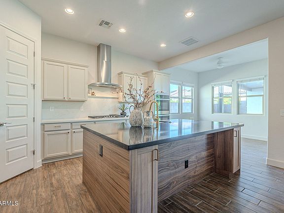 MULTI-GEN Beauty in THE ESTATES! Brand New Kitchen - Quartz Countertops, Custom Walnut Island w/33'' Farm Sink. Gas stove, Dbl Oven, Built-In Microwave. This 4 bed, 4 bath+Den (could be a 5th bedroom) includes large owner's suite, PLUS a separate casita w/bed/bath/family room + separate entrance. Upgraded wood look tile floors throughout home, w/ designer paint in living areas. Beautiful backyard designed for entertaining! Tall trees create a privacy fence, low maintenance turf yard, pergola w/travertine floors & wood fireplace. Big yard! Gutters w/French drains. The gated Estates at Eastmark is an amazing community w/walking paths & an amazing community clubhouse (The Club)with giant heated play & lap pool+gym & event room-that you can rent & playground area. Don't miss this one!