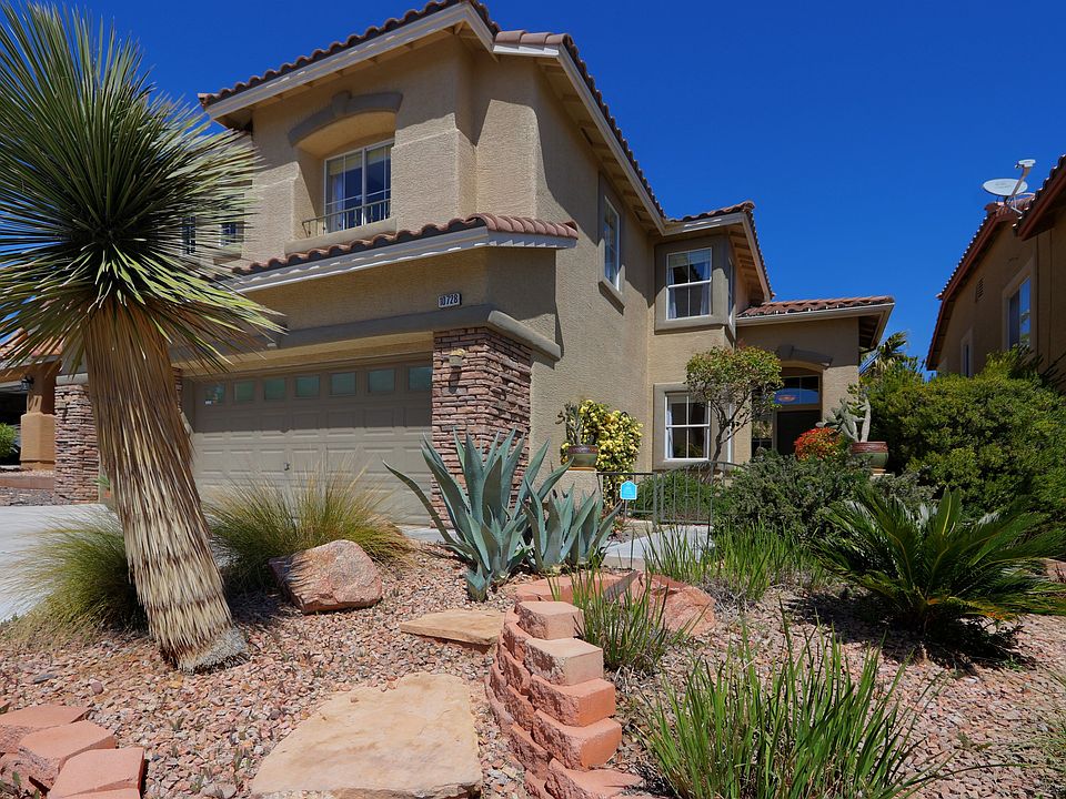 Beautiful home located in the heart of Summerlin. Four bedrooms plus loft with built ins. Kitchen features granite counters, double ovens, new cooktop, large island and upgraded cabinetry. Huge master suite w/dual sinks, separate shower and tub. New flooring through out, vaulted ceilings, two tone paint. Backyard with sparkling pool, gas fire pit and built in BBQ. Low maintenance desert landscaping. Close to Downtown Summerlin and the 215.