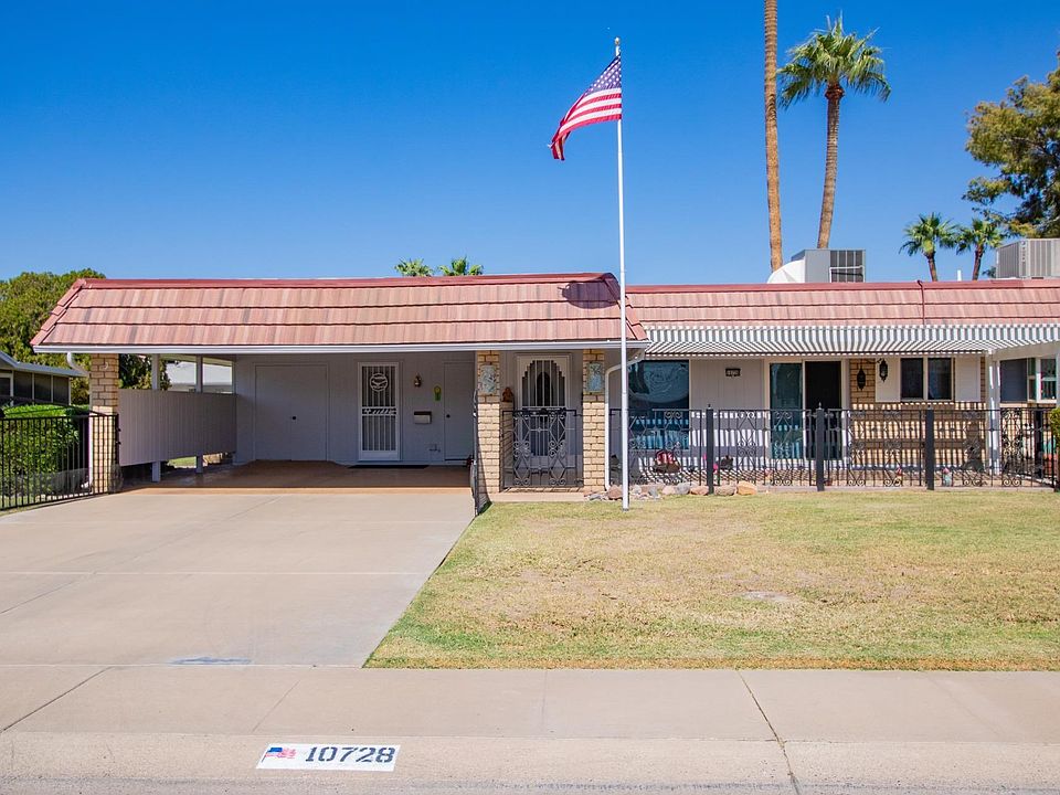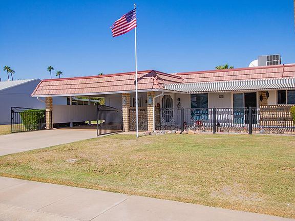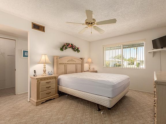 Welcome to this charming 2bed/2bath Spacious Gemini Twin in Sun City's 55+ community. Great curb appeal leads you into the light and bright interior featuring a freestanding fireplace and a fluid open floor plan. A large master bedroom is complete with its own en suite in this desirable split floor plan. Enjoy mornings and evenings on your lovely back patio. Perfect for sipping coffee or a BBQ. Move right and start taking advantage of all Sun City has to offer. Pools, spa's, community centers, golf and so much more. Something for everyone. Do not miss out on this amazing opportunity. Schedule your private showing today!