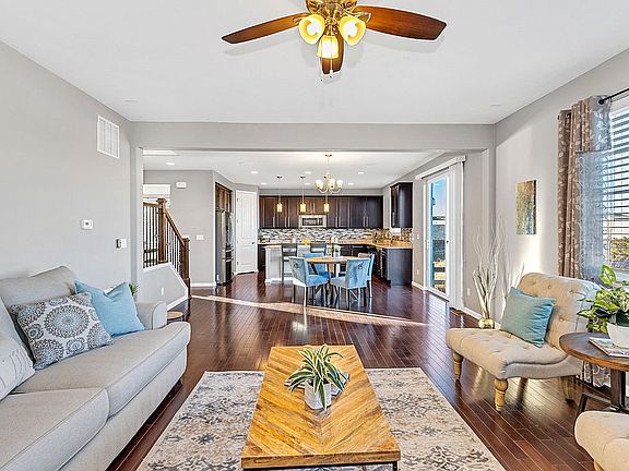 Remarkable two-story home in the coveted community of Meridian Village. This home is situated on a corner lot that backs up to open space, great for privacy! The main level has an open floor plan with a large kitchen island made for entertaining. Freshly painted with new carpet throughout this feels like a new home. Great office or an extra bedroom off the main level as well as a formal dining room. The master bedroom is en-suite with a master bath, tub, two walk-in closets, double vanity, and two walk in closets. Upstairs you have three additional bedrooms, two additional full baths, laundry room, open loft, and every bedroom has it's own ceiling fan! The basement is fully finished with tail ceilings, a 3/4 bathroom, and another bedroom. Basement has it's own wet bar already put in! The home has dual zone heat and a/c. Professional landscaped in the front and backyard, you'll love spending time in your own little oasis! Enjoy everything the community has to offer with a community pool, park, and playground. Easy access to I-25 and DT this home has it all!