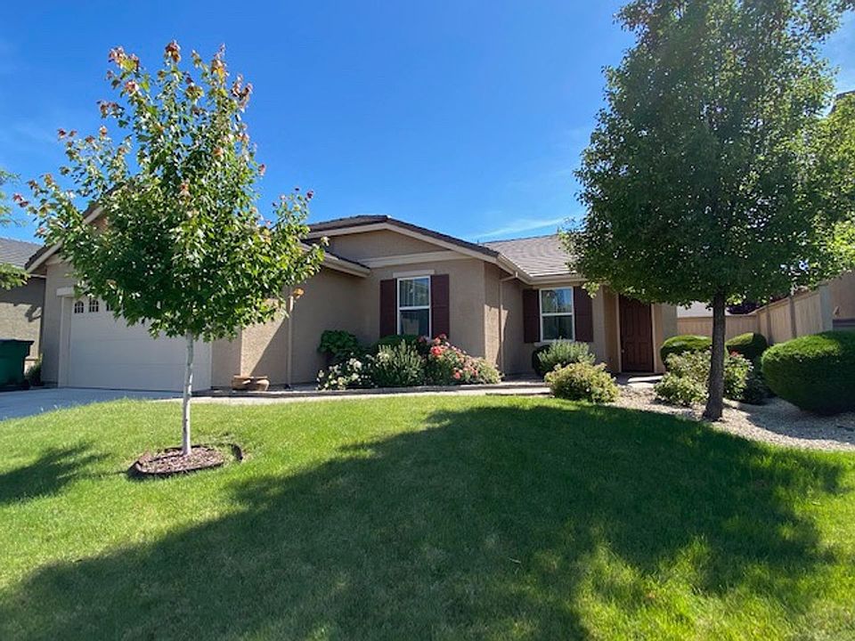 Single level 4 bedroom, 2 bath, 3 car garage home in Damonte Ranch. 1719 square feet. Very nice kitchen with granite counters, stainless appliances, and tile floor. Kitchen refrigerator, washer, dryer and kitchen island included. Very open floor plan with hardwood floors, granite surround fireplace, and built-in cabinets. Master bedroom/bath has walk in closet, his/her sinks, shower stall, and garden tub. Easy to maintain backyard with paver patio, deck on side for lounge area, artificial turf, and Alumawood patio cover features with ceiling fan. No direct rear neighbors! In the process of having new carpet installed in bedrooms and fresh paint done. Will be available for move in on October 15th. Zoned for J Wood Raw Elementary, Depoali Middle School, and Damonte Ranch High School. For more information or to schedule a viewing contact Kylie Bolling. Kylie Bolling S.56657 PM.162615