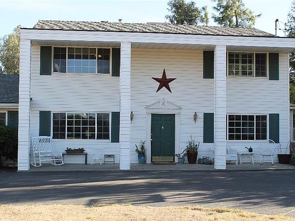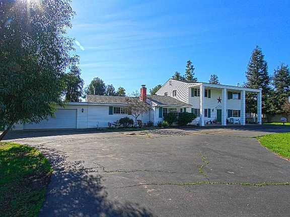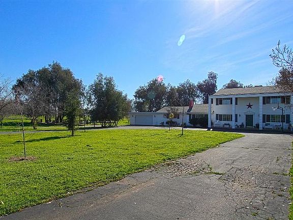 Come home to this traditional 4br, 3.5ba, 3374sq ft colonial estate on 4.78ac w/endless views of the Sierras. A stately gate welcomes you with a wide, paved, circle drive and a large front yard. This custom home features a great floor plan for entertaining and family living. The master suite and two guest rooms are located upstairs as are two full baths; there are flex rooms downstairs which can serve as a second master, an isolated mother-in-law suite, or perhaps you need a home gym or office? There is a sun room off of the breakfast area and a family room with a river rock fireplace off of the formal dining room. Your options are endless on the exterior: plant a family orchard, install a tennis/sport court or your very own go-cart track. Property includes multiple out buildings, leased solar, a dance pavilion, pool, horse facilities which include a four stall barn, pasture and paddock, a raised, fenced, garden, all located in a fully fenced, private, and tranquil setting in the CUSD.