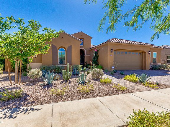 Single story, 3 way split floor plan. Meticulously maintained. Why buy new when you can move in with a yard & over $67,000 in upgrades? No rear neighbors. Soaring ceilings and wide hallways. Gourmet kitchen with GE Monogram stainless steel appliances, quartz counters, staggered maple cabinets with 4 inch moldings, 5 burner gas range, convection ovens, under cabinet lighting, island with pendant lighting and breakfast bar seating. The wall slider in the Great Room has remote operated, motorized shades & opens to rear patio with extended pavers. Other items include recessed lighting throughout, upgraded tile plank flooring, sink in laundry room, water softener, central vacuum, comfort height toilets and upgraded bath faucets. Run - don't walk to this one!