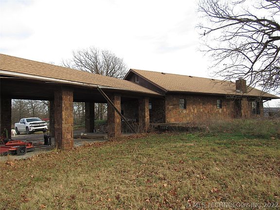 Very unique two story home located East of Checotah. Home has three bedrooms and 3 bathrooms. Three car covered carports. Balcony on 2nd floor. Walk out basement. Close to I-40. Beautiful views of the countryside. Home sits on almost 5 acres. Most of acreage is hillside. Home needs lots of work. Selling as is. Two buildings.