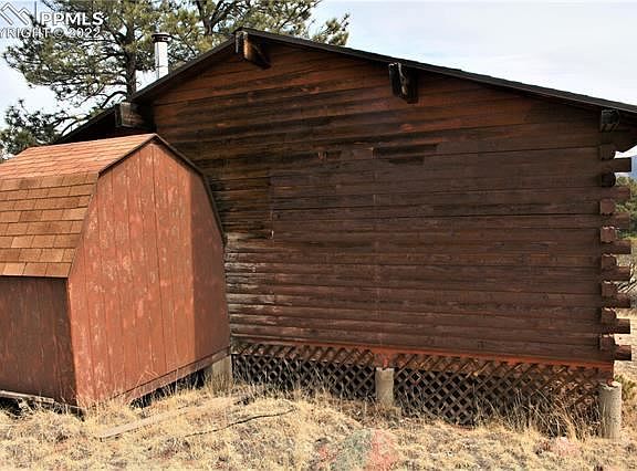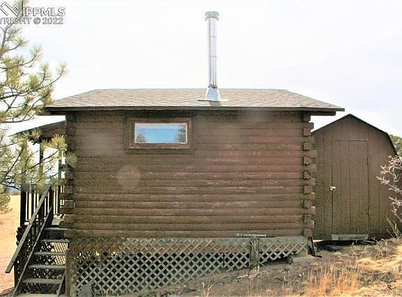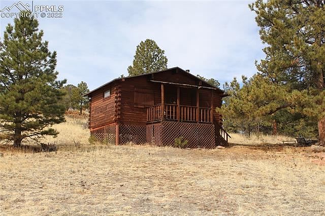 Amazing 30 acre parcel with cozy 336 sf. D-log dry cabin with wood stove and shed attached. Household well is drilled. Septic and electricity will need to be added if desired. Perfect for the weekend getaway, plus there are several other building sites with phenomenal views of Pikes Peak and the second range on the backside. Privacy and tranquility in a beautiful mountain setting can all be yours with this property. Don't wait because it won't last long! All furnishing are included.