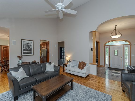 Welcome to this two-story home on just under an acre in the lush green neighborhood of Zumbro Hills, offering over 3,600 finished square feet, four bedrooms, and 3.5 bathrooms. The main level dazzles with hardwood floors, a dining room (or office), the primary bedroom, a cozy living room with a gas fireplace, an eat-in kitchen, a bright sunroom, and laundry/mudroom. Enjoy the primary bedroom with walk-in closets, dual vanities, a soaking jet tub, and shower. The kitchen is a chef's dream, featuring elegant stone countertops, a cooktop island, and ample custom wood cabinets. It seamlessly flows into an airy sunroom with tile flooring opening to a two-tier deck. Upstairs, you’ll find two spacious bedrooms and a full bathroom. The basement offers an entertaining space with a wet bar, an open family room, an optional second laundry, a 3/4 bathroom, a fourth bedroom, and extra storage. Enjoy walkout access to a patio and a tree-lined private backyard.