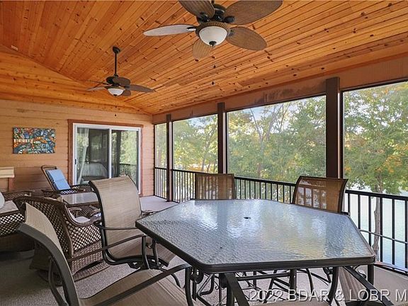 Search no longer for your Lakefront Home! This Village of the Four Seasons 4 bedroom, 3 bathroom home located in a deep water, no wake cove at the 4 mile marker is sure to impress. Walk into an open floor plan with vaulted ceilings, hard wood floors, stone fireplace, updated kitchen with granite, gas range, pantry & stain steel appliances. Lower level includes family room with stone fireplace, wet bar/dining area for entertaining, 2 bedrooms, 2 baths & utility room conveniently located for when you come off your dock. Relax on either the main or lower level screened in porches. This home is about as maintenance free as it gets, with a rock yard, new composite decking & newer windows/sliding doors. Let's not forget about the detached 2 car garage for any storage needs. Easy access by land to golf courses, shopping, restaurants, Bagnell Dam & all Lake activities. Come enjoy everything the Lake Lifestyle has to offer & schedule a private showing today!