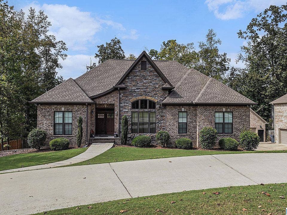 Just Listed in Creels Crossing! One-owner custom-built home with main-level living and finished basement! Beautiful hardwoods, arched openings, and custom details. Great room features stacked-stone gas fireplace and open kitchen with large island, granite countertops, gas range, walk-in pantry, and breakfast area. Master suite offers tray ceiling, double walk-in closets, tile shower, garden tub, and dual vanities. Downstairs, enjoy a full second living space with a walkout den, full bath with shower, bedroom, flex/office room, and plenty of closet and storage space. The garage offers extra room for vehicles or hobbies, featuring 9x7 and 16x7 doors, poured concrete walls, and an additional storage area. Outdoor living includes a screened-in deck with patio below, open grilling deck overlooking a private, fenced backyard. Circular driveway. Convenient location near Moody schools, parks, shopping, and I-20—less than 30 minutes from downtown!