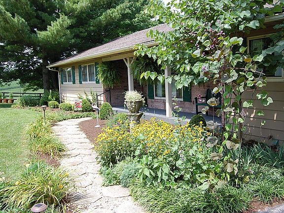 Located in beautiful Bourbon County, this 5 acres offers a one-story house with a walkout basement nestled among mature trees in a park-like setting. The house features a 1st floor master suite, crown moulding, hardwood and tile floors, bookshelves and shelving, 2 fireplaces (1 with stove insert), and sliding doors to the Jalousie porch. The walkout basement has a family room with fireplace, french doors to a second covered porch and a second master suite with dressing room. The deck offers wonderful views of Green Creek and neighboring horse farms.