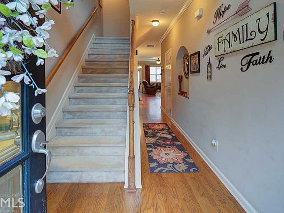 Well maintained townhome in gated community! End unit! Open floor plan features hardwood floors on the main level, granite countertops & breakfast bar, mahogany stained cabinetry and a fireside family room! Unique architectural accents throughout! Split bedroom floor plan, and secondary bedroom has its own private bath! Excellent Forsyth County location, close to entertainment, shopping, dining and travel!