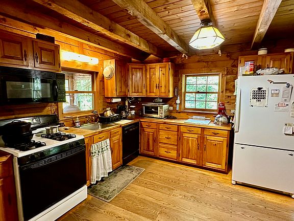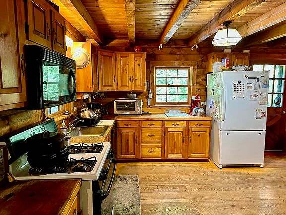 Check out this RUSTIC, COZY 3 bedroom - 2 Bathroom, LOG CABIN secluded on 5 LOVELY LEVEL PRIVATE ACRES. Pegged OAK FLOORS, Sunroom, and Farmers Porch. Plenty of room for your garden. Warm and cozy no matter what the weather with secondary heat sources consisting of a Field-stone Fireplace and (2) wood stoves. Walk out basement. (This is a Crockett log home well-built by Bill McNeil of Francestown.) 2 Story BARN 24x36 with Freeze Pump adjacent to a 20x30 Pond. Small town life with lots of amenities close by - Near ski, golf, and Greenfield State Park as well as a reasonable commute to Manchester and Nashua.