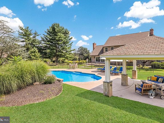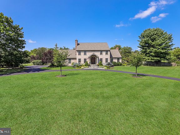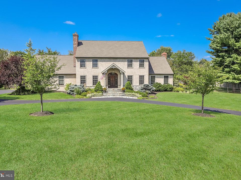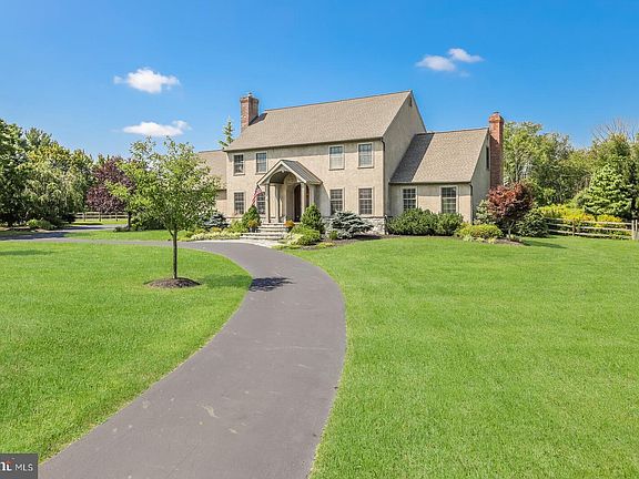 Stunning home situated on 3.02 Acres in Upper Makefield, low taxes, long distance views and impeccably maintained!!! This beautiful home has a lovely, remodeled kitchen (Sycamore Kitchens) and master bath, freshly refinished hardwood floors throughout the main level, freshly painted and a brand-new roof!!! Set on a beautiful private lot with lovely hardscaping and landscaping front and back, in-ground pool with covered pergola and fenced for safety. The custom gourmet kitchen has upgraded appliances - Stainless Viking propane 4 burner stove with beautiful tile motive above - stainless Miele dishwasher - deep stainless sink - upgraded faucet - stainless wine fridge in butler's pantry - butler's pantry also has stainless sink and plenty of cabinets on either side and upgraded backsplash to match the rest of the kitchen. The kitchen overlooks the large family room with a fireplace insert and custom cabinetry surround with TV closet, and mantel with stone surround plus easy access (replaced Anderson door - 2019) to the rear patio and access to the pool area. The formal living room also has a woodburning fireplace insert with custom mantle. The dining room is extra large with plenty of room for a large dinner gathering and there is an office located off the family room. Completing the first floor of the home is an updated powder room and laundry room with large storage room attached, perfect for ironing, folding, storage of household supplies etc. Moving to the second floor of the home there are 4 very large bedrooms. The master bedroom has an office/sitting room attached with custom cabinetry for clothes or storage, plus closet area which leads to the updated bathroom (2017) with Kohler free standing soaking tub, huge steam shower, bidet and Dornbracht fixtures and double sinks with leathered granite counters and Italian tile on walls and floor. The hall bath is also updated with neutral travertine tile floor and pedestal sink. All the toilets in the house are Duravit and the faucets are Dornbracht. Moving on to the outside of the home - the roof was replaced in 2021, the back patio 2015, porch and front walkway 2016. Driveway replastered in 2013, well #2 2016, re-stucco on garage side (2019) The heated concrete pool was resurfaced in 2017 (Carlton Pools), the spa was new 2017 (Arctic Spa - Raines Pools), forward facing split rail fence replaced 2018 (County Line Fence) and Pergola 2013. All the Kingsley Bate teak furniture by the pool is included in the sale along with the large model, Arctic hot tub spa which was purchased in 2017