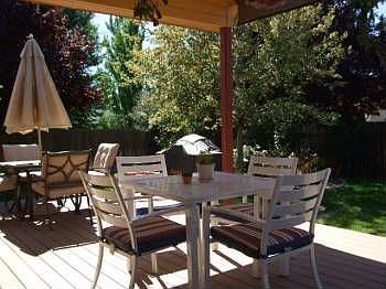 Single level, open, large size rooms and vaulted ceilings. This very open 3 bedroom plus office/den home has all of the upgrades including Plantation shutters, water softener, granite counters in kitchen and master bathroom and retractable central vacuum to name a few. Enjoy quiet mornings on the front private patio or evenings on the covered Trex deck in the backyard. Matching storage shed included. Great location. Lease purchase available.