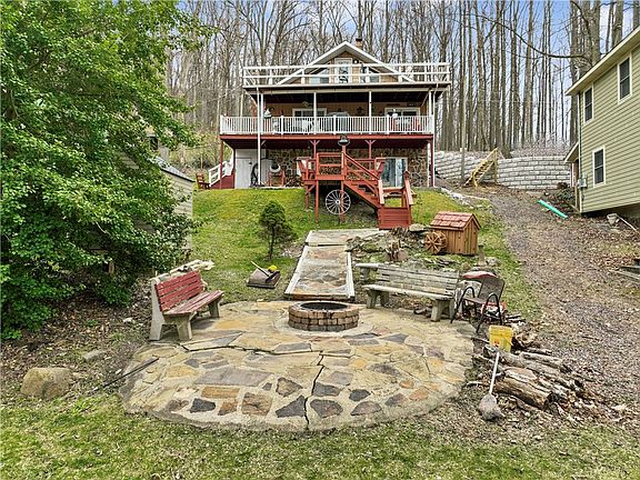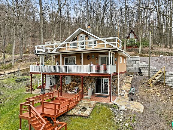 YOUGH LAKEFRONT property with amazing views from all 3 levels and viewing decks of the home! Outdoor stone fire pit & dock with permit slip that will convey with the property. Don't miss this opportunity to be situated on a serene cove of the Lake. This well-maintained, multi-level lake home includes a garage and several additional lots giving you plenty of room for parking and all your lake toys! The interior has a beautifully crafted spiral staircase footprint leading to a loft with extra sleeping quarters and the best views of the Lake from the balcony. Handcrafted kitchen cabinets, wood burning stove(s), newer windows, driveway w/retaining wall, two floors of entertaining space, and two full baths will provide everything you need to enjoy all four seasons at the Lake. Warmer days are quickly approaching... Get ready to Soak Up the Sun...... All Summer Long!