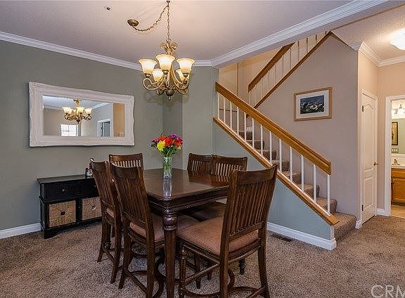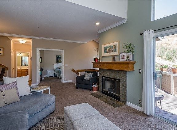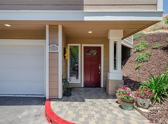 Beautiful Top of the Hill location in Leland Terrace, with panoramic views of the City lights from numerous areas in and out of the house. Relax on the large wrap around deck taking in all the views. This well maintained and upgraded property is ideally centrally located near downtown San Luis Obispo's shops, restaurants, schools, walking/hiking/biking trails, parks, and acclaimed French Hospital. A wonderful bright floor plan with lots of windows! Upgraded throughout, with crown molding, freshly painted last year, wainscoting, recessed lighting, decorative light fixtures, newer stainless steel appliances, & more. Featuring 3 bedrooms, 3 baths, front living room with a fireplace and vaulted ceilings that flows into the dining area wrapping into the bright spacious kitchen with lots of storage cabinets! Open access to the large deck through sliding doors in living room and main floor bedroom, that may be used as an office or a family room too! The stairs to the upper floor has a large wall mirror giving an open feeling. The upper floor contains the master suite with gorgeous views, dual vanity master bath with lots of storage and large shower, a full guest bath, nice laundry pantry, and a spacious, remodeled guest bedroom with wainscoting! Attached 2 Car garage that is clean with epoxy flooring! This top of the hill location is a sought after end unit with green belt all around, giving you some privacy, as well as gorgeous views of peaceful serenity! Priced at $629,000.