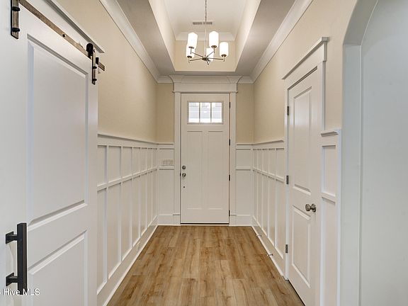 Pre-Sale | Features and options may vary. Looking for a new home filled with quality craftsmanship and thoughtful details? Fox Homes, a local custom builder, will be building this 3-bedroom, 2-bath Craftsman-style home with approximately 2,024 heated square feet in the golf community of Meadowlands in Calabash, NC. The exterior offers classic curb appeal with stone accents and a front-loading two-car garage. Inside, the open-concept design features 9-foot-plus ceilings throughout, a vaulted ceiling with wood beams in the kitchen, living, and dining area, and elegant tray ceilings in the primary bedroom and foyer. The home will include crown molding and built-in cabinetry throughout, along with custom wainscoting in the entryway and great room. The kitchen is designed for both everyday living and entertaining, featuring custom cabinetry, quartz countertops, a subway tile backsplash, and a spacious nine-foot island. The primary suite provides a relaxing retreat with an oversized walk-in closet with built-in shelving. The en-suite bath will feature a large tiled shower with floor-to-ceiling tile, a private water closet, and double vanities with granite countertops. Enjoy relaxing afternoons on the back porch, plus the convenience of a laundry and mudroom just off the two-car garage with a built-in drop-zone bench. Residents enjoy outstanding community amenities including a pool and fitness center. Ideally located near the dining and shopping of downtown Calabash, this home is just minutes from Sunset Beach and close to the South Carolina border and the attractions of the Myrtle Beach area. *Photos are of a model home and for illustration purposes only. Features, finishes, and options may vary.