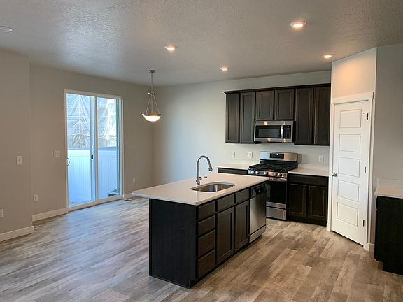 Beautiful "Nebo" townhome in Harvest Park in Mapleton, UT. Home has 3 bedroom and 2.5 bath and a total of 1664 sqft finished living space. Unfinished basement adds another 675 sqft for storage. Off of the kitchen is a private 16'x10' patio that is fully fenced. Kitchen features quartz counters and stainless appliances, including a gas stove. Main floor is full LVP and carpet in the main living areas upstairs. Laundry room has a large cabinet with 4 doors for storage and lots of counter space. Master bedroom has a 16' ceiling with fan and the master bath has dual sinks with a shower. Townhome is available for immediate occupancy. Contract is for 12-24mo. No smoking or pets allowed. Utilities are paid by tenant and HOA is covered by landlord.