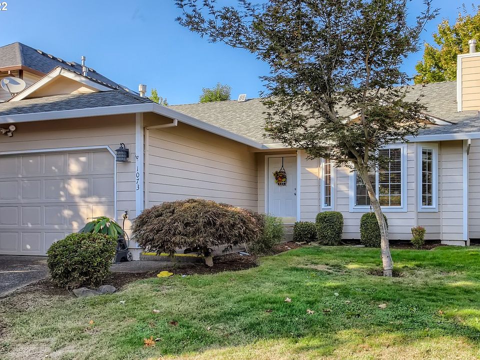 Come home to this conveniently located one level 3 bed, 2 bath home in Aloha. Spacious formal living room with gas fireplace. Kitchen provides newer appliances including gas JennAir range and generous eating bar. The large family room has a slider to the fenced backyard and patio. The owner's suite touts a separate double sink vanity and a skylight that naturally brightens the shower. New exterior paint and water heater in 2021, new furnace and central air in 2019, new roof in 2009.