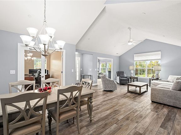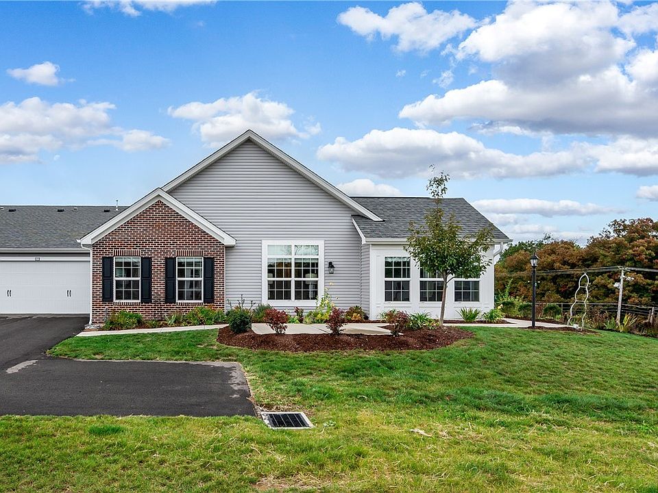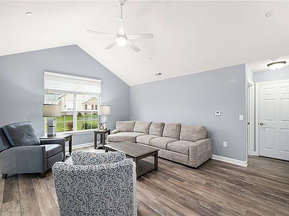 Two years young and full of updates, this Canterbury model condo has been meticulously cared for. Fresh paint, cathedral ceilings, recessed lighting and luxury vinyl floors run throughout the home providing an inviting modern feel. This large two-bedroom condo is also equipped with a beautiful sunroom, private large office with beautiful French doors, and two storage rooms. The office space could also be used as a third bedroom. The master suite provides a private ensuite with custom shelving and drawer system in the large walk-in closet. Some additional updates include custom cabinetry/added shelving, custom blinds, updated backsplash, garage floor, storage room, gas line to the home and more! Conveniently located near major highway and shopping. HOA fee covers snow removal, trash, lawn and snow removal, Clubhouse and Pool! This is a must-see!