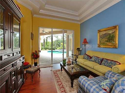 Well maintained pool home with 3 bedrooms plus a den with french doors, 3 full bathrooms, 3 car garage, paver brick driveway, sidewalk, front sitting area overlooking two lakes and preserve. Gorgeous kitchen with stainless steel appliances and covered lanai area for outdoor entertaining,tile and laminate flooring, plantations shutters and much more!