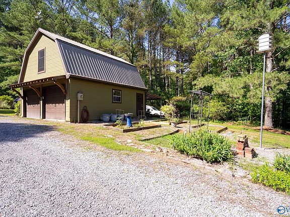 Be on the water in 25 minutes from downtown Huntsville! Boat launch and dock on Paint Rock River, Approx 3.5 miles from Tennessee River. Approx 11 Acres. Abundant wildlife! 530' of River Frontage. Very unique property. This home has many updates. Large open kitchen / gathering room with outstanding view. Nice deck all along the back of the home. 3 bedrooms /3 bath home. Detached garage has a studio above with electrical service. Very open floor plan, private primary bedroom suite and large office.