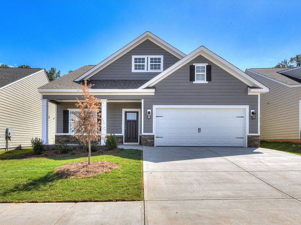 Now Move in READY! The Bondi Plan by Designer Homes of Georgia! This beautifully designed 3-bedroom, 2-bathroom single-story home is located in the sought-after Sanctuary subdivision in Aiken, SC. Set on a spacious lot that backs up to peaceful green space, this home combines charm, comfort, and thoughtful design. Step inside to an inviting open floor plan filled with natural light, custom trim work, and elegant details throughout. The living area features a cozy fireplace and flows seamlessly into a luxurious kitchen equipped with granite countertops, a stylish tile backsplash, and stainless steel appliances. Enjoy your private outdoor oasis with a fully landscaped backyard and a covered patio—perfect for relaxing or entertaining. All bedrooms, including the spacious owner's suite, are conveniently located on the main level. The owner's suite features a stunning en-suite with dual vanities and a tiled walk-in shower. The Sanctuary neighborhood offers a lifestyle of ease and community, with sidewalks, streetlights, a large community garden, and a scenic walking trail. Located just minutes from Downtown Aiken, Bruce's Field, Hitchcock Woods, premier equestrian venues, shopping, and fine dining. Buyer and buyer's agent to verify square footage and school zones.