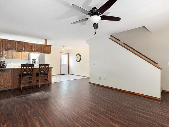Welcome to 1073 W Green Pine, located in the Forest Park subdivision within walking distance to the Nixa elementary and high school. Situated on a cul-de-sac, this 3 bedroom, 2 bath home offers a split bedroom floor plan with the master on the main level. Master has a walk-in closet and has a pocket door giving the master a private entrance into the full bathroom. The living area opens into the kitchen with bar seating as well as room for a large kitchen table. All appliances stay including the newer stainless refrigerator. Access to the full privacy fenced yard is located off of the kitchen.Upstairs you will find two additional nice sized bedrooms and a newly remodeled bathroom.Seller has made many updates making this home move in ready! Those updates include new front and back doors, laminate flooring upstairs, new carpet on stairs, new ceiling fans in most rooms, fresh paint, and new screens on windows. The HOA is $100 yearly and includes a subdivision swimming pool with private bookings available for parties! Don't miss out on this one!