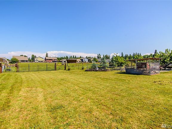 Mt Rainier view & curb appeal grace this 3 bedroom + bonus room + den, 2 bath home on 2.13 fenced & cross fenced acres. In the heart of Yelm, near shopping, entertainment etc. Open concept kitchen w/granite to spacious vaulted living area w/windows of mtn views. Master Suite w/5pc bath & walk in closet. Covered deck & large back patio w/hot tub & fireplace to enjoy all yr. 2 car garage + 30x35 detached shop w/benches & cabinets, garden shed, chicken coop, full RV hookup on blktp, sprinklers plus