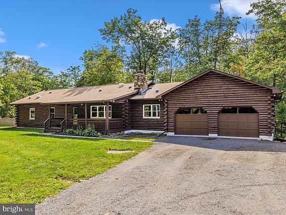 Nature lovers' paradise. Nestled in the trees on top of the mountain by Gambrill Park, this charming log home on 6.67 acres is ready for you to call it home. Enjoy evenings snuggling by the beautiful stone fireplace or out front on the covered porch; this home offers a relaxed private lifestyle minutes to Frederick. The wooded trails are perfect for nature walks or riding your dirt bikes for adventurous fun. Inside, you'll enjoy the exposed log walls, updated fresh paint, large bedrooms, and renovated bathrooms. The open floor plan offers a flexible living space to enjoy. The oversized kitchen is perfect for entertaining. Full laundry rooms on each level. The lower level was recently renovated and includes a separate kitchen, rec room, den, and full bath with a laundry area and outdoor entrance. Perfect for guest quarters, multi-generational living, or even an Airbnb. Plenty of room to expand. Previous owners also added a concrete foundation for an addition and a detached garage. Excellent living inside and out. Perfect 10!
