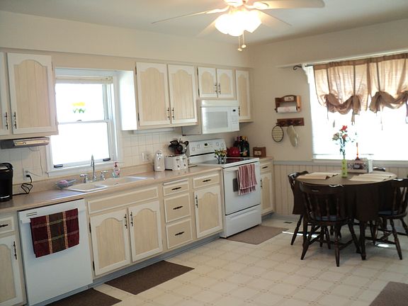 This is a well kept ranch acreage overlooking views to the East! Nice large country eat in kitchen, appliances do stay. Large living room with sliders to the deck with a fenced in area for your favorite pet and goldfish pond, nicely landscaped! Two large bedrooms and two smaller ones! A large bathroom with twin sinks, plus a half bath. Large garage 26x30 - Mud room laundry with newer appliances that stay! Several fruit trees, two out buildings for storage and more! Hurry on this great property!