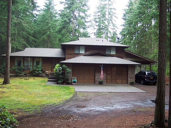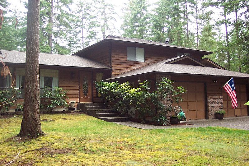 Enjoy life wrapped in privacy, peace & relaxed comfort. Set on .8 of an acre, this 3-BR tri-level offers 2000+ SF of living area ideal for relaxing & entertaining. Striking cherry floors & crown molding add rich warmth to the living spaces; big windows bring a soft touch of Nature to every room. Bright roomy kitchen, updated bathrooms, large family room & a covered deck for outdoor fun. Tree-wrapped property has 2-car garage, covered 13 x 28 ft RV carport, storage sheds & superb privacy!