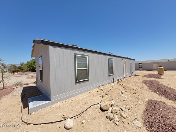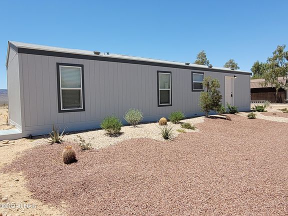 Beautiful new home available in up-and-coming Yucca, Arizona. Peaceful A½ acre homesite with brand new 2021 Clayton Visalia Manufactured home. Move in ready with CITY WATER, septic and electrical. 2 bedrooms, 1 bath 656 sq ft of living space. 2 x 6 exterior walls Frigidaire appliance package. Laminate wood plank style flooring throughout as well. Shaker cabinetry and brushed nickle plumbing along with lots of recessed lighting! Blinds included. Live in a new, low density spacious planned community of A½ acre manufactured homes sites with paved roads. Two minutes off freeway off at Old Trails Road, Desert and Mountain views. 20 minutes to Kingman, 30 minutes to Lake Havasu City, 45 minutes to Laughlin and the Colorado river. HUD approved. HOA is INACTIVE