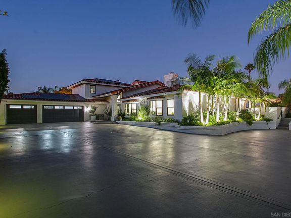 Discover resort-style living in this private Mt. Helix estate, a gated one-acre park-like sanctuary designed for luxury, privacy, and effortless indoor-outdoor living. The backyard feels like a boutique resort with a 70’x20’ sparkling saltwater pool, shaded pavilion, floating daybeds, fire features, and an oversized 16-person spa with back, legs, and foot jets, with an infinity-edge. A full outdoor kitchen pavilion features a built-in BBQ, bar seating, a flat grill, a stove, and dual refrigerators—perfect for hosting gatherings under the stars. A fully paid 58-panel solar array delivers exceptional energy efficiency. The expansive circular driveway accommodates up to 20 vehicles, leading to a smart three-car garage with two Tesla chargers and a rare drive-through bay offering direct backyard access. Inside, a whole-home smart system controls lighting, locks, garage doors, and Pentair pool/spa features. Soaring ceilings, skylights, and engineered wood floors create an airy, elegant atmosphere. The chef’s kitchen features a 6-burner Viking range, premium Viking appliances, a large island, custom cabinetry, and a walk-in pantry—ideal for culinary enthusiasts. The luxury primary suite offers a spa-caliber retreat with a steam shower and smart-shower controls. Dual-pane windows and doors frame serene garden views throughout the home. Lush landscaping includes a whole orchard: lemon, lime, orange, tangerine, avocado, mandarin, mango, pineapple-guava, fig, nectarine, plum, and olive trees—a rare blend of modern efficiency and timeless luxury—just minutes from downtown San Diego. Welcome to a rare Mt. Helix sanctuary—an architecturally refined, resort-inspired estate set on a private one-acre parcel. Behind a gated entry, the property unfolds into an extraordinary blend of craftsmanship, technology, and natural beauty designed for those who value privacy, serenity, and elevated indoor-outdoor living. The home’s smart-enabled infrastructure manages lighting, climate, security, pool and spa features, and garage systems with seamless precision. Skylights and expansive windows draw in soft natural light, enhancing the warmth of wide-plank engineered wood floors and the elegance of custom finishes throughout. A chef’s kitchen anchors the heart of the home with professional-grade Viking appliances, a 6-burner gas range, an oversized island, and a walk-in pantry —ideal for sophisticated cooking and effortless entertaining. The primary suite is a true retreat, featuring a spa-inspired bath with a steam shower, smart shower controls, oversized tub, dual vanities, and curated materials that create a calming, restorative atmosphere. The grounds offer mature landscaping and a curated orchard with citrus, avocado, mango, guava, fig, nectarine, plum, and olive trees. Lush greenery, colorful blooms, and swaying palms enhance the property's sense of tranquility. Multiple outdoor destinations—including the pool pavilions, lounging balcony off the primary bedroom, and shaded garden paths—add layers of luxury that elevate daily life. A fully paid 58-panel solar array, dual-pane windows and doors, and energy-efficient systems contribute to modern sustainability. The smart 3-car garage includes two Tesla EV chargers and a rare drive-through bay for effortless access to the rear grounds. This exceptional Mt. Helix estate blends refined living with a timeless Southern California lifestyle—private, serene, and just minutes from the heart of San Diego.