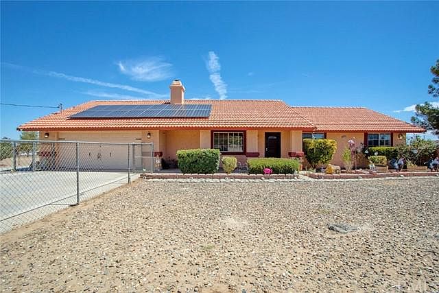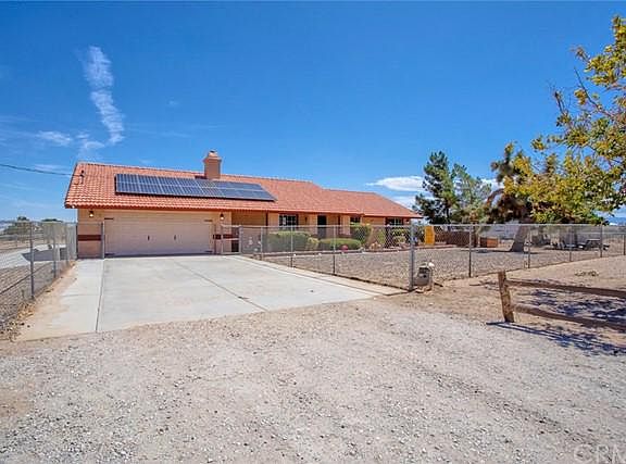 GOT HORSES? LOVE TO ENTERTAIN? TIRED OF HIGH ELECTRIC BILLS? This ones for you! Located in the SOUGHT-AFTER AREA in OAK HILLS**just blocks from the TOP-RATED SNOWLINE SCHOOL DISTRICT **Close to the 15 fwy and shopping**over 2 acres of FLAT USABLE LAND! Electric bills are not a concern at this house with ROOF MOUNTED PAID OFF SOLAR! This immaculate home features 4 bedrooms, 2 full baths, two car garage & 2 RV CARPORTS! Enter into the cozy front room that features vaulted ceilings & a WOOD BURNING STOVE to keep you warm during the winter months. Still need more heat? Youll love the RECENTLY INSTALLED HVAC system. This RANCH STYLE home includes newer fixtures, ceiling fans, and tile flooring. Enjoy cooking in the newly remodeled kitchen complete with**GRANITE COUNTERTOPS & TILE BACKSPLASH**REFINISHED KITCHEN CABINETS**LARGE PANTRY**ALL APPLIANCES INCLUDED!! Remodeled bathrooms include**COPPER SINKS**GRANITE COUNTERTOPS and a beautiful**WALK-IN TILE SHOWER in the master bath. The Laundry room is centrally located with exterior access to the back yard doubling as a mud room complete with a sink** WASHER & DRYER INCLUDED. Ready to entertain? The backyard features a **LARGE COVERED PATIO and CUSTOM BUILT-IN BARBEQUE ISLAND. Enjoy starry evening nights in a newer 6-person SPA with a GAZEBO cover. The backyard is cross fenced to keep your dogs separate from the horses. Your horses will enjoy their**6 STALL HORSE BARN with RUNS and a LARGE PADDOCK & plenty of land for any other animals you desire. Just minutes from Wrightwood, Silverwood Lake and Big Bear! Dont miss out on this TURNKEY dream ranch!