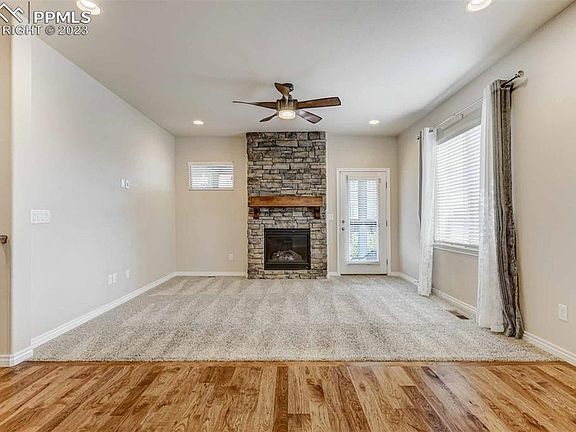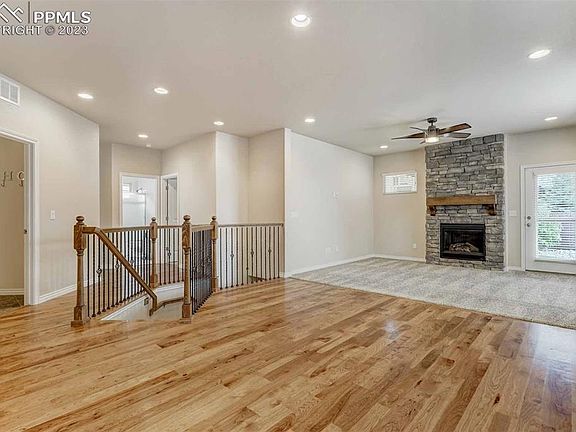 North Fork Rancher! This home still feels NEW! Walking in you'll love the wood flooring and abundance of natural light! The main level is open to the living/dining/kitchen and there is access to the large covered porch and privacy fenced backyard! The kitchen has stainless steel appliances, granite countertops and upgraded cabinets. The basement has a large rec room with a projection screen perfect for movie nights! PLUS the basement has ample storage space! Conveniently located near dining, shopping, entertainment, Air Force Academy & every amenity imaginable! Come take a look, we think you will love it! Be sure to take the 3D Tour too!