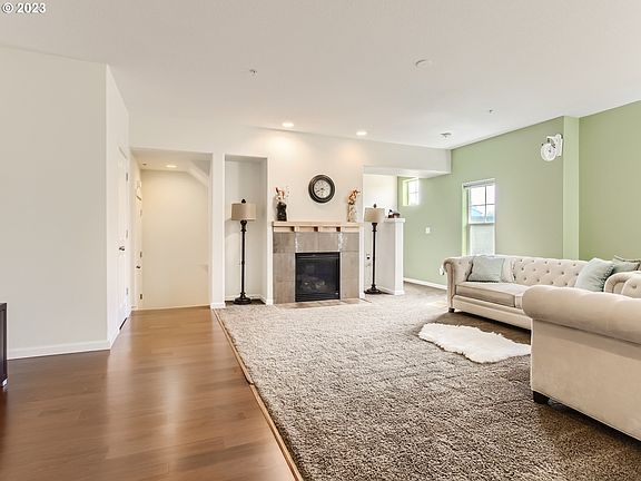 Lovely end-unit condo in a desirable location! Main level features an open concept great room with gas fireplace, carpeting and hardwoods, and a modern kitchen with an island, gas range, breakfast bar, pantry, and granite tile counters. The primary suite features a walk-in closet and attached full bathroom with double sink vanity and walk-in shower. The second bedroom also has an ensuite, full bathroom. Laundry conveniently located adjacent to both bedrooms. Enjoy your morning coffee on the sunny balcony as well! A stone's through to public transit, intel, & Nike.