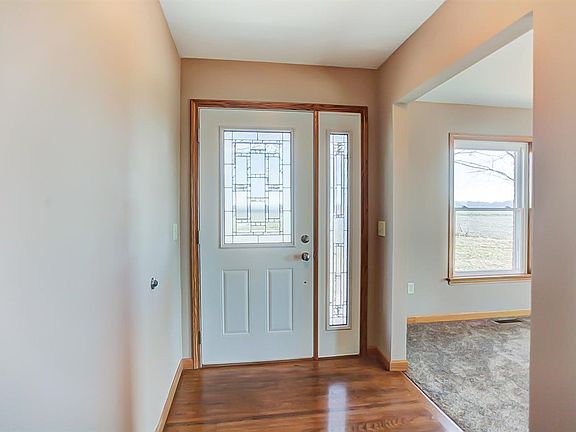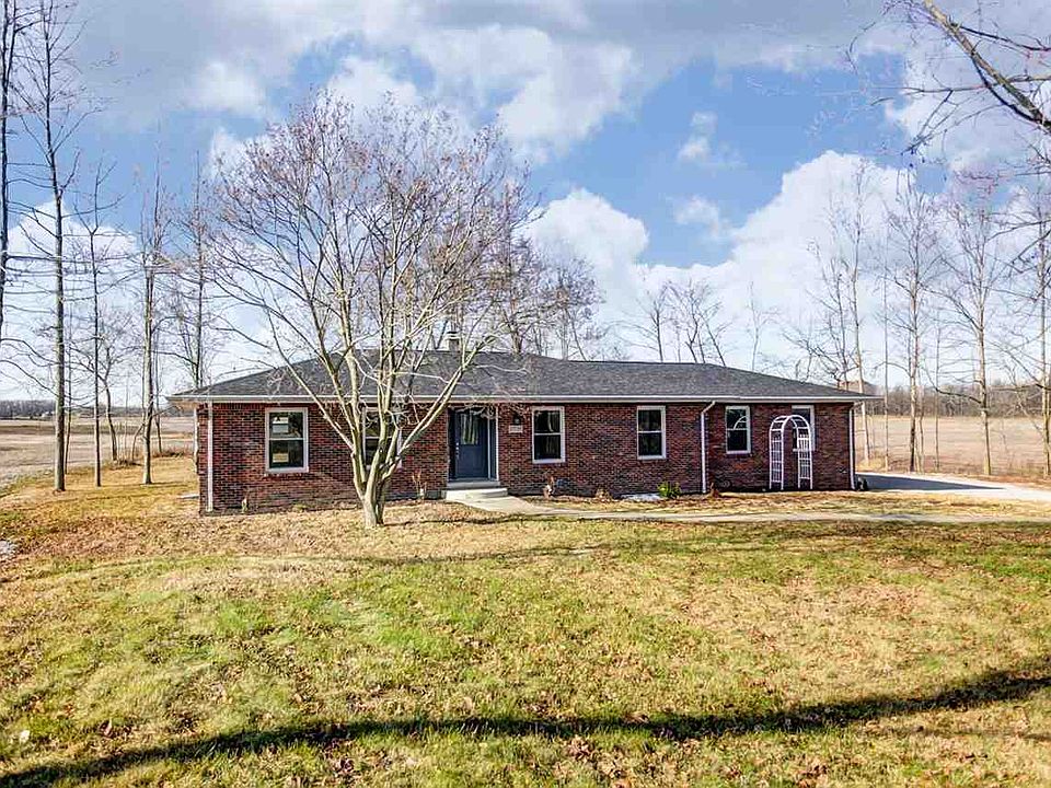 If you're looking to move to the Country, then this is the home for you. Completely remodeled 3 bdrm, 2.5 bath ALL BRICK Ranch home on FULLl finished basement. This great home sits off a quite country road & has 1.65 acres. New survey is provided. The main floor offers Large Living Rm & open dining space with new patio doors that lead to the spacious deck. The Kitchen has custom cabinets with built in corner Hutch, Roll top desk, Lazy susan, under cabinet lighting, subway tile back splash, with updated sink faucet & counters. Also included is the walk-in pantry with ton of shelf space. Added to the main floor is the half bath & Large master closet. Laundry room is a walk-through w/extra space for pull-down ironing board, wash sink and extra cabinet space. Lower Level has 2 bedrooms with egress windows & remodeled Full bath w/tub-shower. Basement also offer full Kitchen & Huge family room space w/wood burning stove. There is a cellar entrance to the Lower level through the utility room. So much is new - roof (complete tear off), flooring throughout, Windows, & Doors too! Spacious garage has New Garage Door Opener & utility sink. New Concrete step and front door. Large deck on the rear of home to relax and watch the beautiful sunsets across the spacious farm land surrounding this home. Don't miss this beautiful setting & great home!