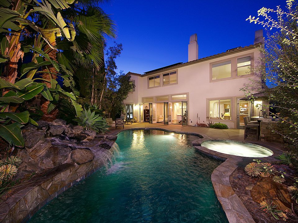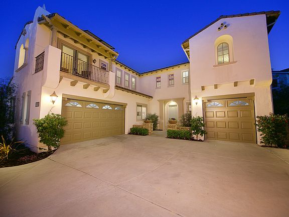 Pride of ownership reflected throughout every corner of this gorgeous Derby Hill Plan 1. A Living Smart home built by Pardee Homes in 2006, the stunning Spanish architectural design and open floor plan are ideal for enjoying southern California indoor/outdoor living. Spacious 4 bedroom, 3.5 bath plus huge bonus/media room and separate office/nursery off master suite. One bedroom with ensuite bath on first floor. SOLAR, SOLAR, SOLAR - extremely low electric bills. Gourmet kitchen with large granite slab island with breakfast bar, family sized breakfast nook, dual ovens, stainless appliances and walk-in pantry. Kitchen opens to spacious family room with built in entertainment center and cozy fireplace. Light and bright open floor plan with three sets of French doors in the living and dining room that naturally flow into the stunning back yard oasis. Ideal for entertaining with a sparkling pebble-tech pool and spa with waterfall, custom built in BBQ island with kegerator, separate fire pit plus an ample side yard. Luxurious master suite with corner fireplace and dual walk-in-closets with custom built-ins. Master bath with marble surround deep soaking tub, glass enclosed shower, his and her vanities, and leading to ensuite office/exercise room/nursery with its own quiet balcony. Additional features include Brazilian cherry hardwood flooring, epoxy flooring in garage, water softener, fire sprinklers, plus dual zoned AC. Convenient Carmel Country Highlands location close to shopping, freeways and beaches and within the highly ranked Del Mar and San Dieguito Union school districts, specifically within the Ocean Air and Sage Canyon Elementary Option Area.