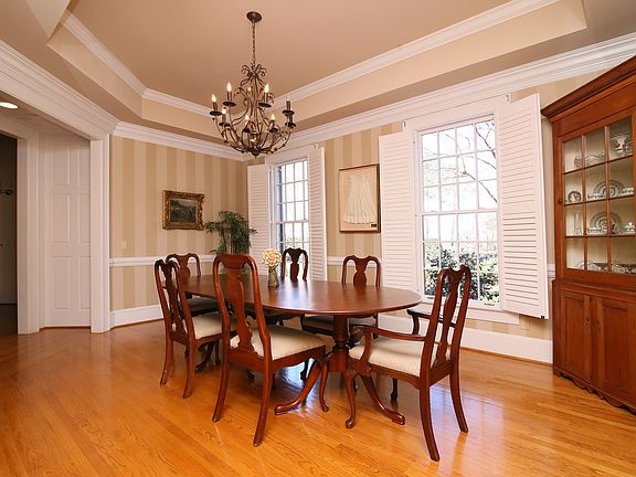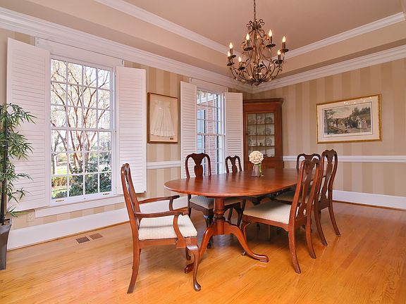 Classic brick Georgian Colonial in a great location on the 18th tee has views of five holes and sidewalks to clubhouse, golf course and the pool, tennis, playground and fitness complex. Beautifully landscaped flat lot with lawns, rose garden and secluded pool. Main level includes a formal dining room with large butler
