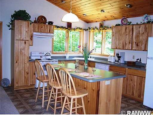 Love your privacy? Then this 2 bedroom, 2 bath home is for you. Open atmosphere with step saving kitchen, plenty of storage in the hickory cabinets, living room features cultured stone gas fireplace. Master bath with jet tub. 3 season porch allows you to enjoy the wildlife on this 4.93 adjoining the National Forest. Full walkout basement you can finish to your liking. Attached 2 car garage. Near the Chippewa River, Moose Lake, snowmobile and ATV trails. Enjoy all the year around activities this