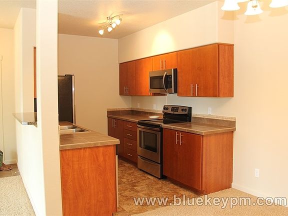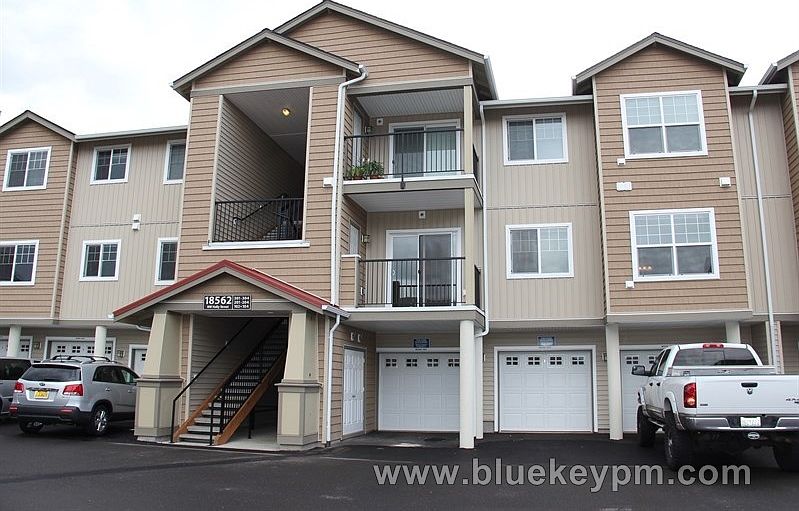 Pictures taken several years ago. 2 bedrooms, 2 bathrooms condo with one car garage. Located just off NW 185th Ave and Walker Rd offering easy access to Hwy 26. This unit is on second floor. It has an open floorplan with a corner fireplace in the family room and see through window for viewing the kitchen plus easy access to the dining room. Sliding glass doors lead to the balcony which has a storage closet. Granite accents, tile countertops, stainless steel appliances and plenty of cabinet space make the kitchen a creative inspiration. The primary bedroom is spacious with walk-in closet, bathroom with tiled vanity and an over-sized bathtub with shower. Convenience washer and dryer for your use in the unit.. No pets please. Call Blue Key Property Management, Inc. $1750 Rent, $1750 Security deposit, $55 non refundable screening fee per adult age 18 and older. Renter's insurance required. Blue Key Property Management, Inc. licensed in WA and OR 10734 NE Holly Street #45-203 Hillsboro, OR 97006