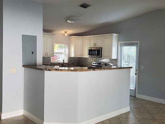 Brand-new roof! This 3-bedroom, 2-bath pool home is nestled on an oversized corner lot, boasting an exceptional swimming pool and ample space for entertaining. Enjoy the outdoors under a covered patio, and benefit from the convenience of a super-sized storage shed. Safety and comfort are ensured with high-impact doors and windows installed throughout the home, excluding the bonus room, with all enhancements properly permitted and finalized. The remodeled kitchen shines with white cabinets, granite countertops, and a stylish backsplash, complementing the home's modern aesthetic. Stay cool with a 3-year-old A/C system, and admire the sleek knockdown ceilings and hi-hat lighting that add a touch of elegance to this captivating residence!